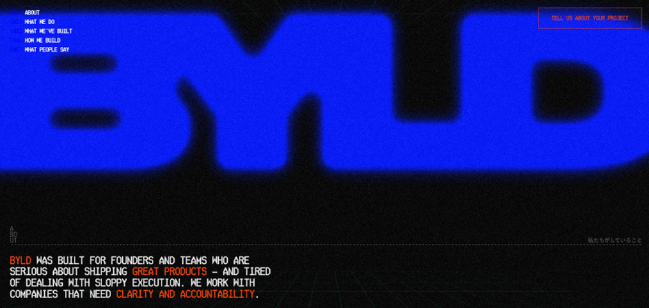Even without reading the words, visitors can tell this company is connected to coding and digital design. Despite being in all caps, the font doesn’t feel intimidating. The clear spacing between words, prevents the text from looking crowded. The result is a layout that feels structured, futuristic, and perfectly aligned with BYLD’s brand message.
